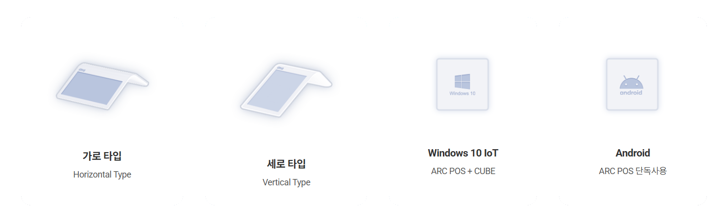 또한, CUBE와 함께 설치하는 윈도우 타입과 ARC POS단독으로 설치하는 안드로이드 OS도 선택이 가능합니다.